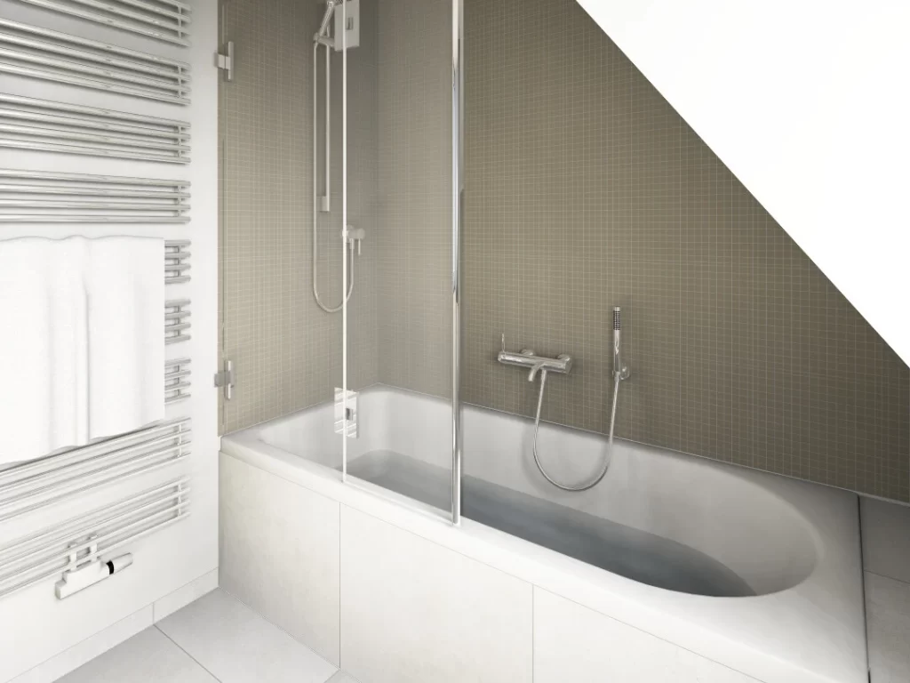 Nach der Renovierung: Eine moderne Badewanne mit Einstieg sorgt für ein bequemes Bade- und Duscherlebnis.
