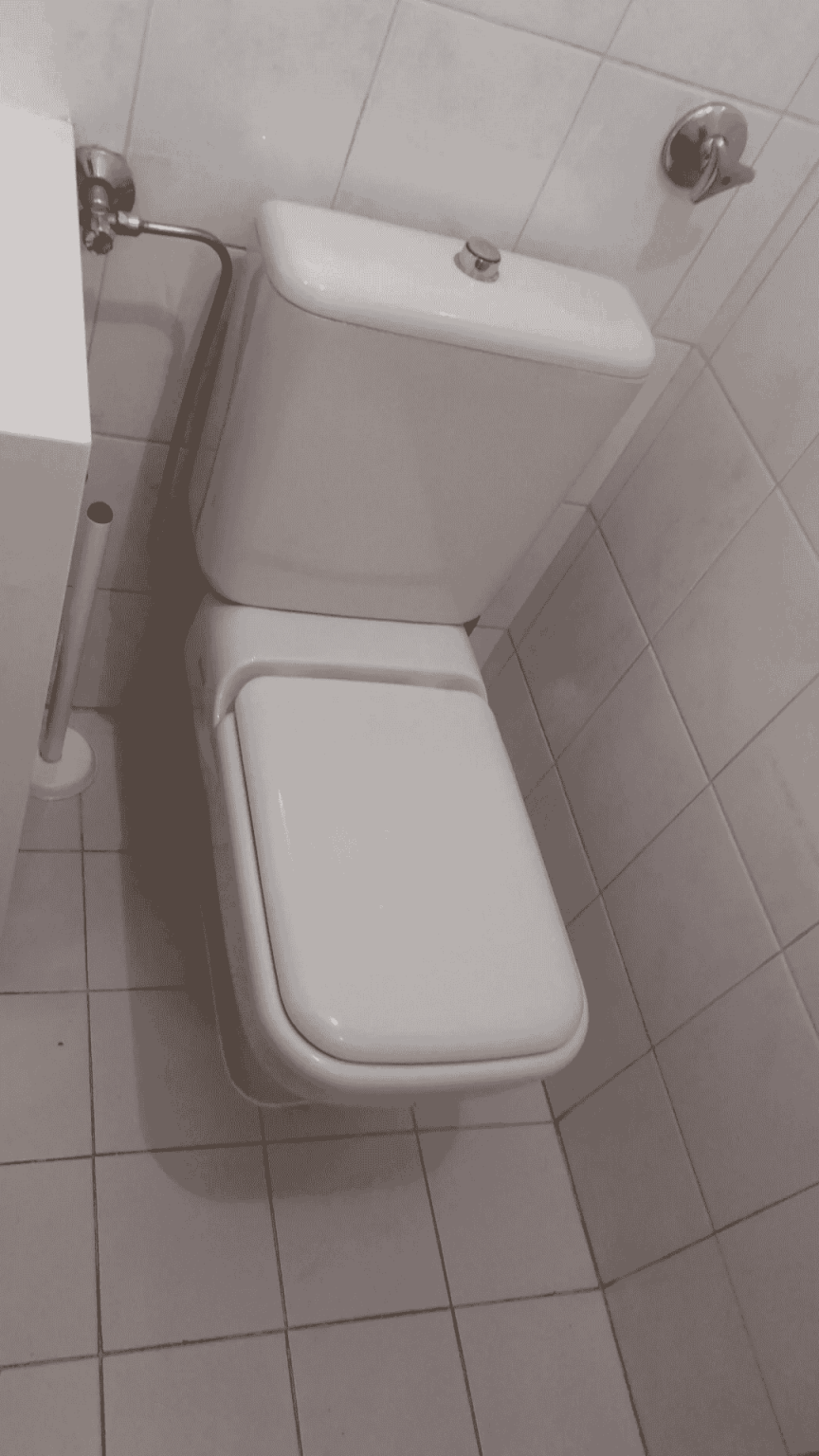 Bestand: WC und Spülkasten waren veraltet und die fehlende Ablagefläche führte zu Unordnung. Der Raum hatte zudem wenig Licht.