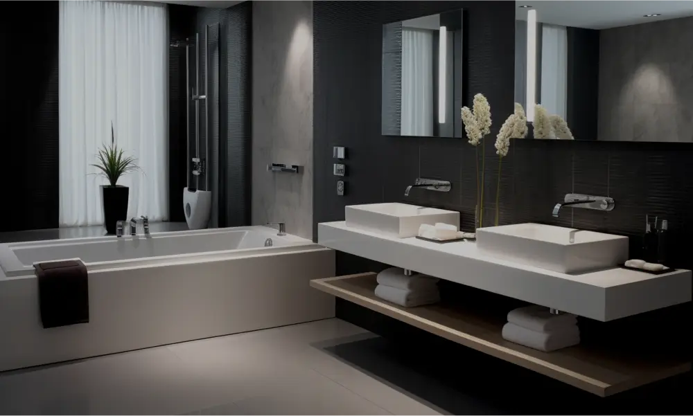 In diesem Projekt gestalteten wir ein Badezimmer mit einem besonderen Lichtkonzept. Die Decke wurde abgehängt und mit einer schattenfreien Beleuchtung versehen, die den Raum indirekt und blendfrei beleuchtet. Das Highlight ist der künstliche Sternenhimmel, der eine entspannende Atmosphäre schafft. Die Lichtplanung liefert ein perfektes Ambiente.