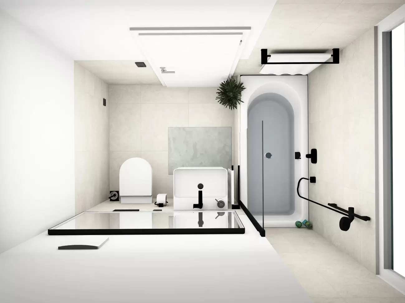 Der Fokus liegt auf Funktionalität und Eleganz, was zu einem Bad führt, das sowohl praktisch als auch optisch ansprechend ist.